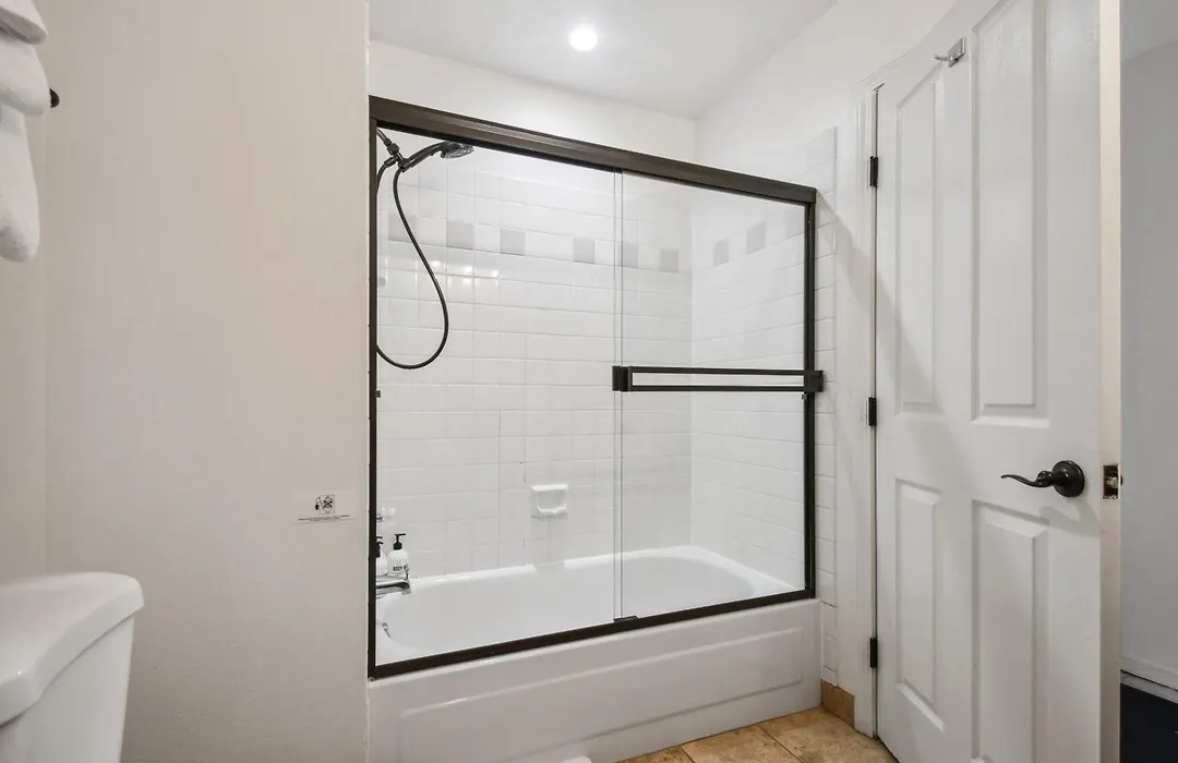 As casas de banho também incluem casa de banho separada e chuveiro. Há secador de cabelo, lençóis de banho e toalhas para o conforto dos hóspedes.